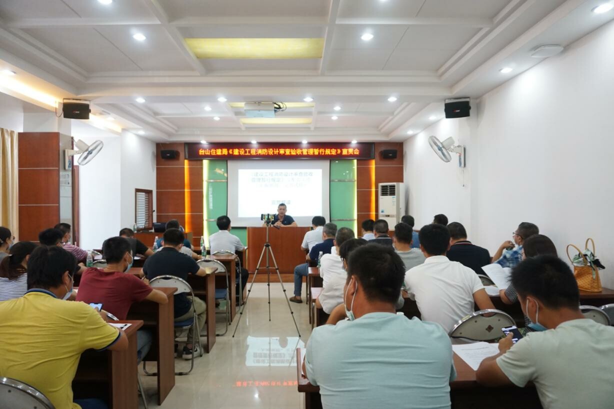 为进一步提高我市建设工程消防审验质量,7月24日下午,市住建局举办《建设工程消防设计审查验收管理暂行规定》宣贯会。市住建局消防验收临时工作组、市质安站全体监督员及我市工程建设、设计、施工、监理、消防工程安装等单位负责人共70人到会场出席了宣贯会,另有约80人通过钉钉直播参加会议。市住建局雷逸槐总工程师主持会议并发表讲话。