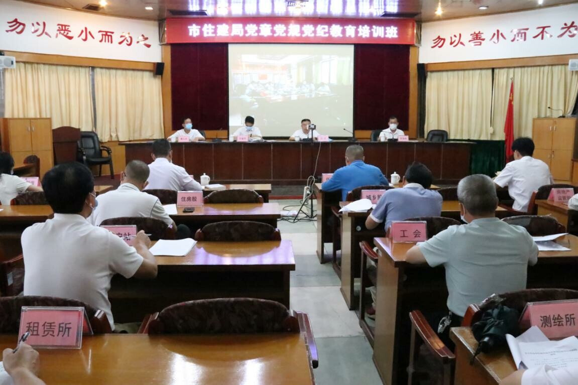 10月14日下午,市住建局2020年党章党规党纪教育培训班在局机关308大会议室举行。培训班以“严守政治纪律,践行‘两个维护’”为主题,深入学习贯彻习近平新时代中国特色社会主义思想,教育引导党员领导干部增强“四个意识”、坚定“四个自信”、做到“两个维护”,严守政治纪律和政治规矩,切实履行全面从严治党政治责任,为全面建成小康社会和“十三五”规划胜利收官作出新的更大贡献。培训班由局党组书记、局长刘文主持,局领导班子成员,各股(室)、下属单位和市建管中心的负责人参加了培训。