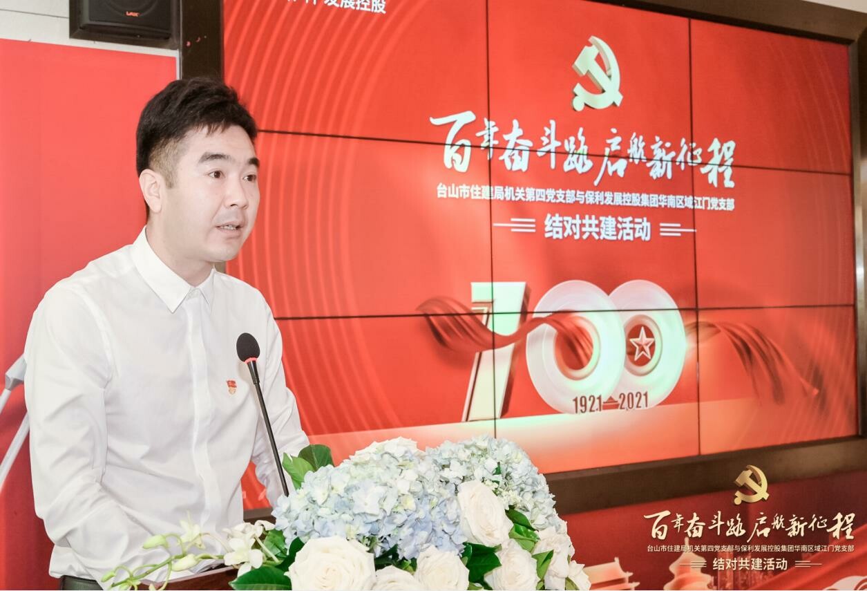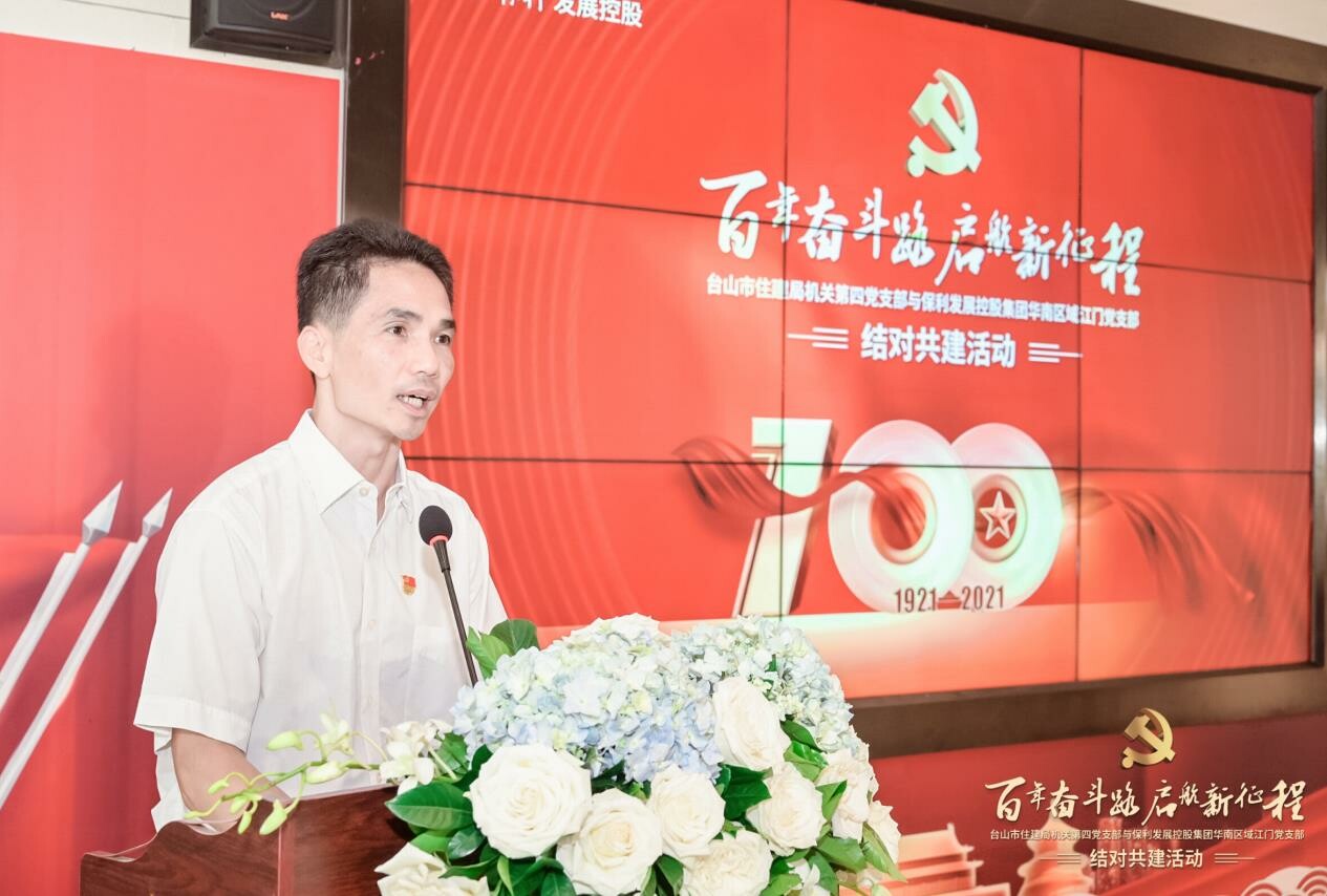 今年是中国共产党成立100周年,也是“十四五”开局之年。为营造共建共治共享的社会治理格局,以共建促党建、促交流、促合作、促发展,进一步探索创新党建工作方式,强化工作联动,全面提升党的建设质量,着力构建基层党建工作新格局,5月10日上午,中共台山市住建局机关第四党支部与保利发展控股集团华南区域江门党支部举行以“奋斗百年路 启航新征程”为主题的“结对共建”活动。市直机关工委谭远东书记、盘爱红副书记,市住建局领导班子成员以及结对单位双方党员参加了此次活动。