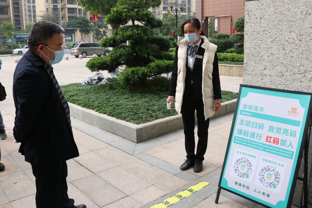 在物业小区,刘文局长实地查看小区出入口扫码、测温、登记等工作,认真听取有关物业服务企业人员落实防疫物资储备等情况,督促物业企业要慎终如始地抓好疫情常态化防控措施,不仅要加强物业从业人员个人防护,还要落实好外来人员登记、摸排、报告等工作,加大环境消杀、快递等外来物件管理消毒力度,筑牢“外防输入、内防反弹、人物同防”坚实防线。