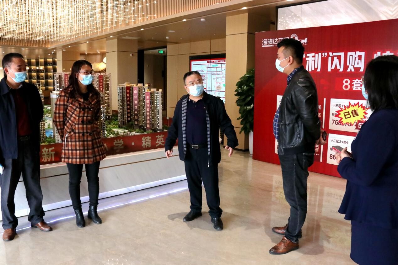 在房地产销售中心,刘文局长询问查看销售中心扫码、测温、佩戴口罩、分批接待等防疫措施落实情况,提醒企业要将销售现场常态化疫情防控措施落实到位,严格售楼场所人员管理,做好销售中心、样板房、卫生间等公共场合的通风消杀等工作。同时针对企业张贴《台山市住房和城乡建设局关于购买商品房的温馨提示》的存在问题,要求企业马上整改,将《温馨提示》印发张贴在醒目位置,切实保障购房人的知情权、选择权和监督权,营造公开、公平、真实、透明的销售环境。