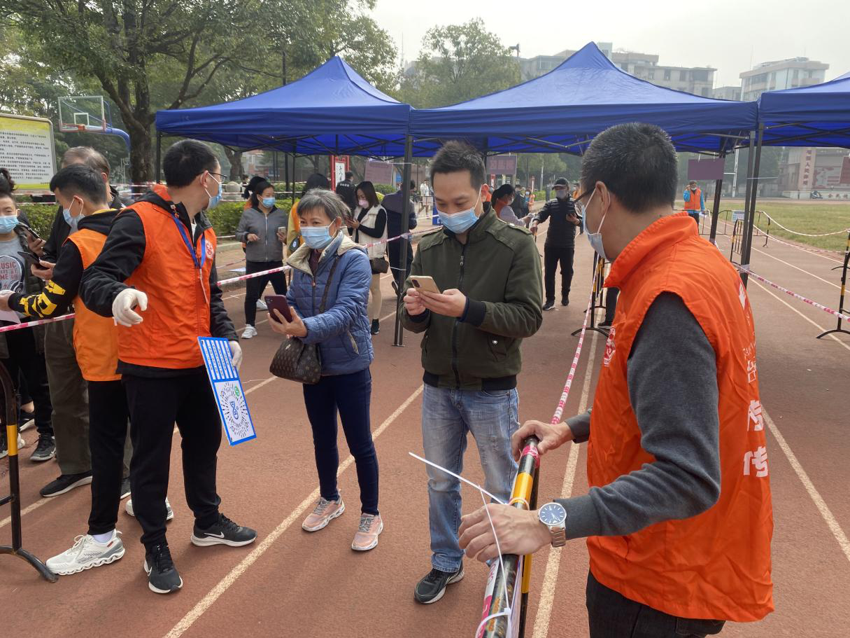 协助维护队伍秩序,提高核酸检测效率。市住建局志愿者在统一安排下,迅速分工,履行职责。积极耐心引导群众有序排队,维护队伍排队秩序,有效防止人员聚集产生的风险;采用二维码指示牌,张贴引导信息等方式,帮助群众使用智能手机将信息输入生成核酸采样二维码,进一步加快核酸检测采样速度。现场排队等待的民众在志愿者的引导下,服从防疫工作安排,按照规定在待检区域等候,自觉配合医务人员等待检测,确保各个环节闭环相连,高效保质。