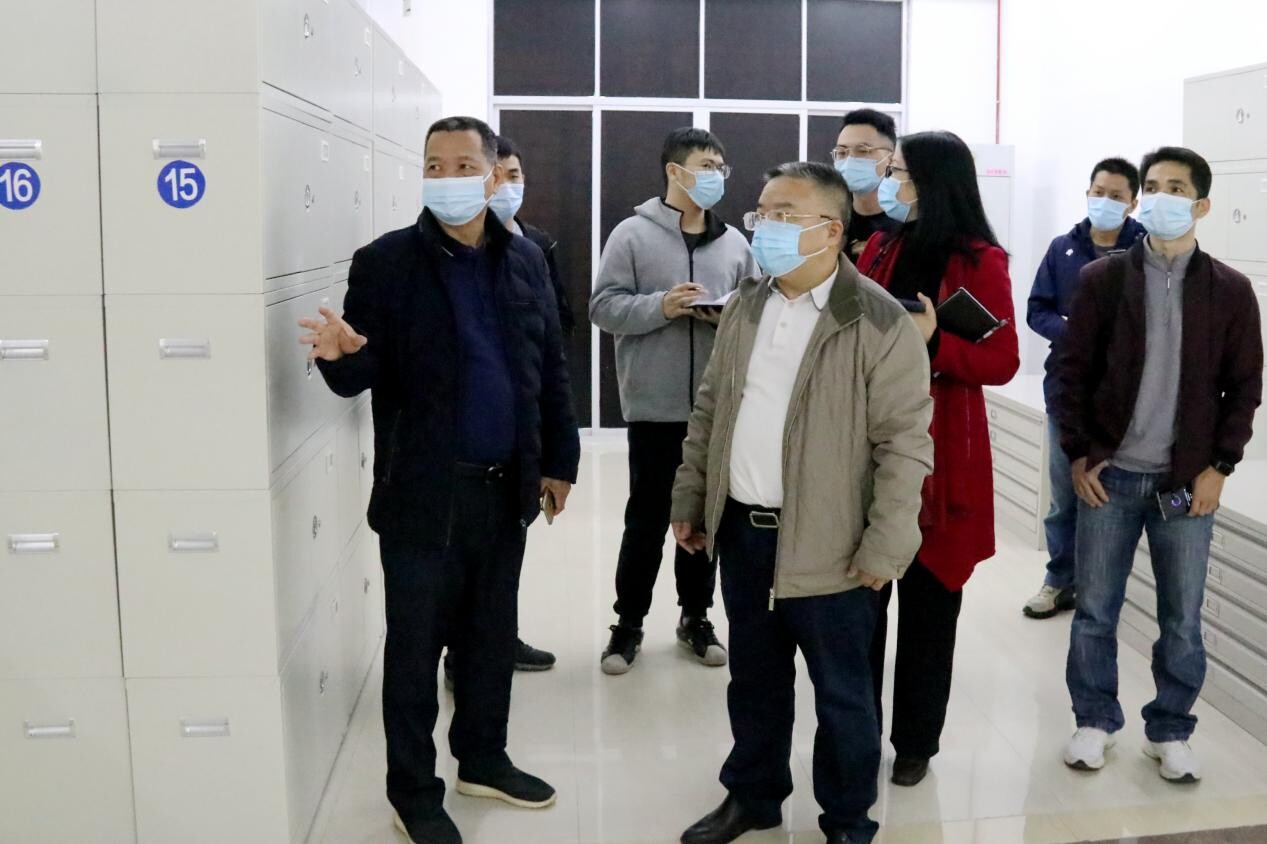 在城建档案馆,刘文同志一行先后实地查看库房、消毒室、机房等功能用室,详细了解建设工程档案验收归档管理情况及消防安全、人员配置、疫情防控等工作。