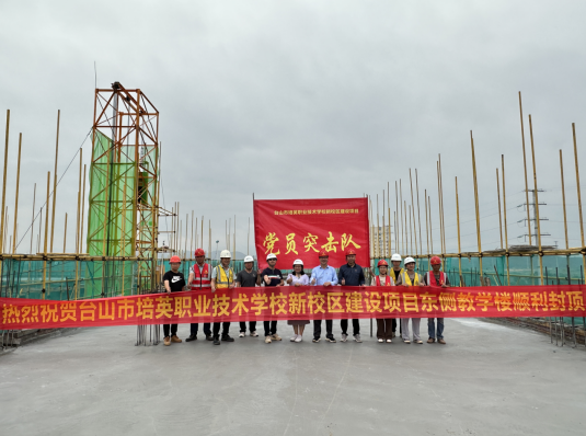 为加快推进建设项目的顺利进展,培英职业技术学校新校区建设项目临时党支部成立了党员突击队,坚持党员先行,强化问题导向,着力推动项目建设机制形成和问题解决。项目负责人牵头,全体党员共同发力,梳理汇总项目推进中遇到的堵点、难点,着力解决重大项目“卡脖子”问题,努力破解要素制约,积极推动项目高质量建设。在工地临时党支部的带领下,目前项目建设进度喜人,西侧教学楼及东侧教学楼已于5月份顺利封顶,图文信息中心、实训中心等按节点任务顺利推进。