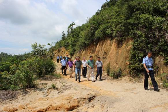 8月2日上午,江门市国土资源局、江门市林业局与我局共同深入古兜山林场非法采矿现场对扫黑除恶线索进行督导并部署下一步工作。