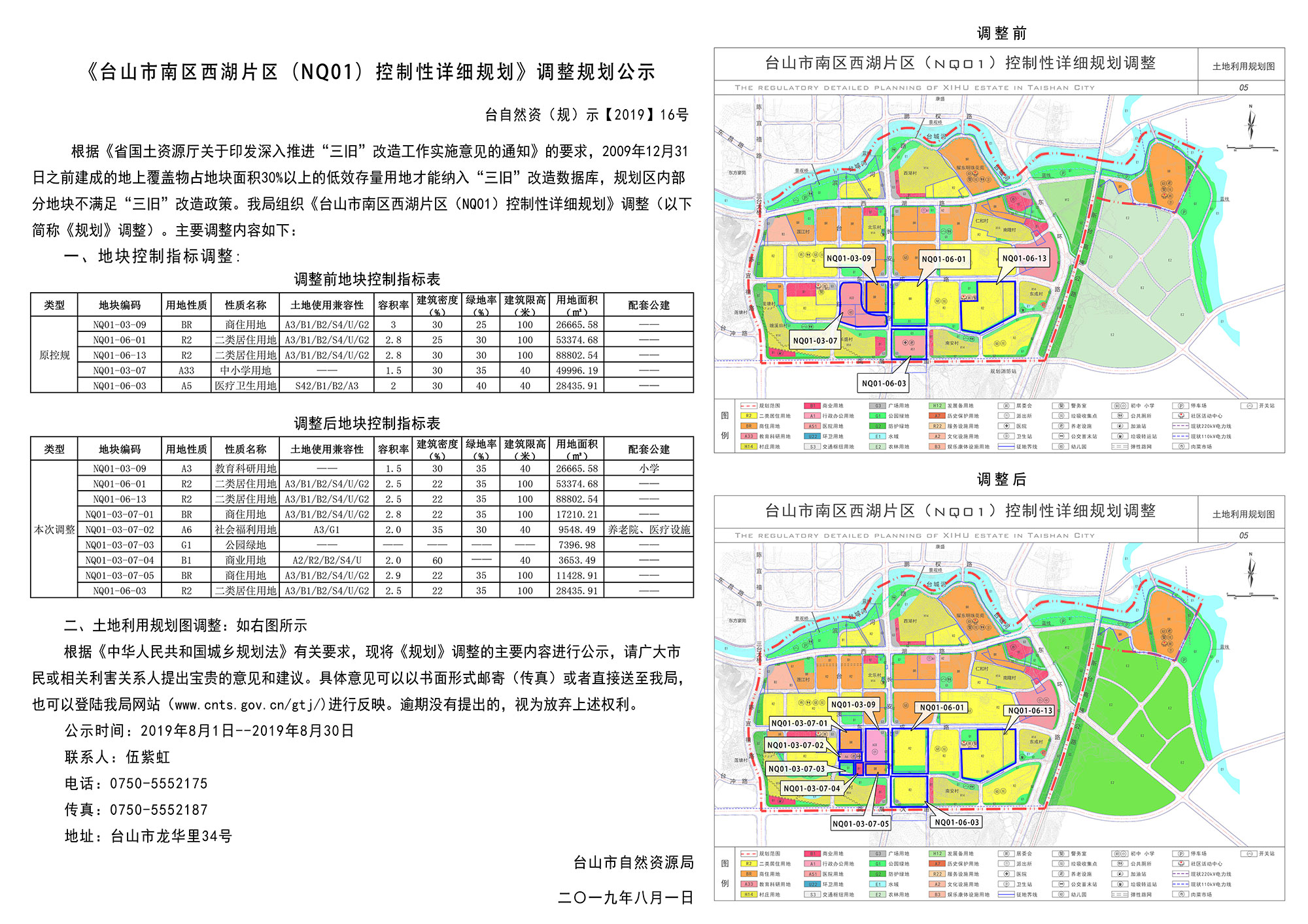 《台山市南区西湖片区(NQ01)控制性详细规划》调整规划公示