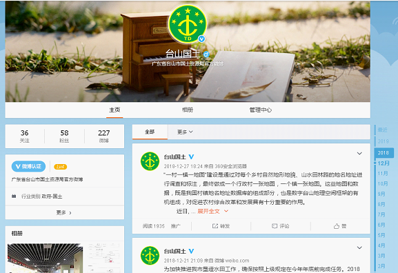 (三)微博情况。为充分发挥新媒体平台作用,我局还开通了微博,网址为:https://weibo.com/u/5509675251。名称为:“台山国土”,微博二维码如下: