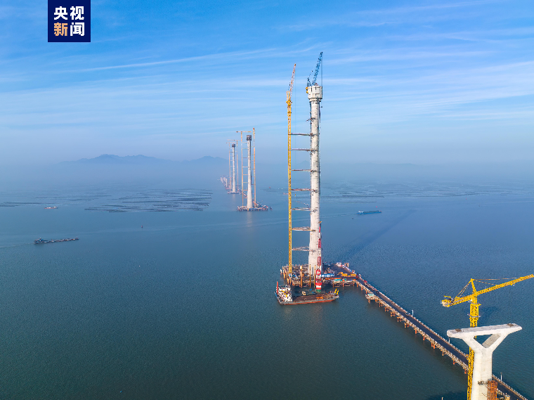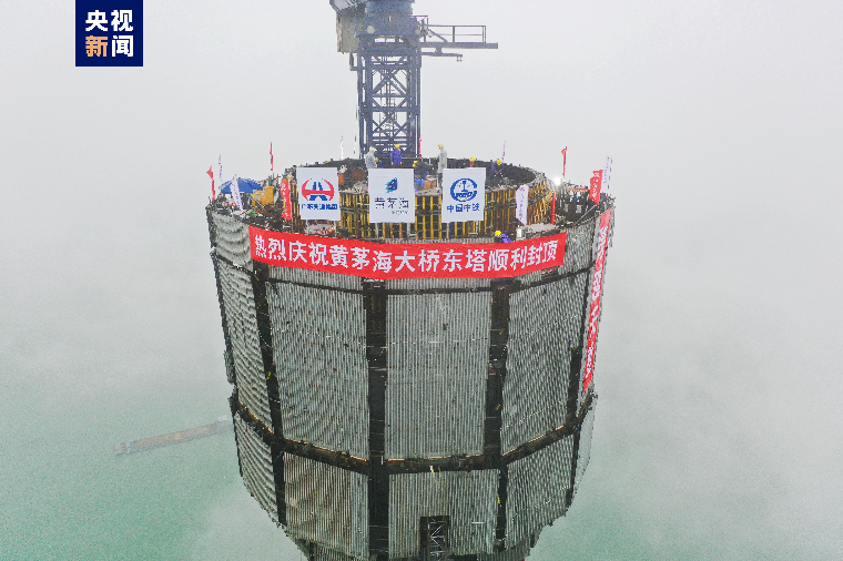 黄茅海跨海通道项目跨海段设置高栏港大桥和黄茅海大桥两座主桥,共5个主塔。其中,黄茅海大桥主跨径2×720米,全长2200米,是目前世界上跨径最大的三塔公路斜拉桥。此次封顶的3座主塔塔高均为254.7米,相当于85层楼高,共有下、中、上塔柱和塔冠4个施工区段,塔柱混凝土主体分43个节段进行施工,单次浇筑混凝土量最大达958立方米。黄茅海大桥东塔、高栏港大桥西塔由中铁大桥局承建,黄茅海大桥西塔由保利长大工程有限公司承建。
