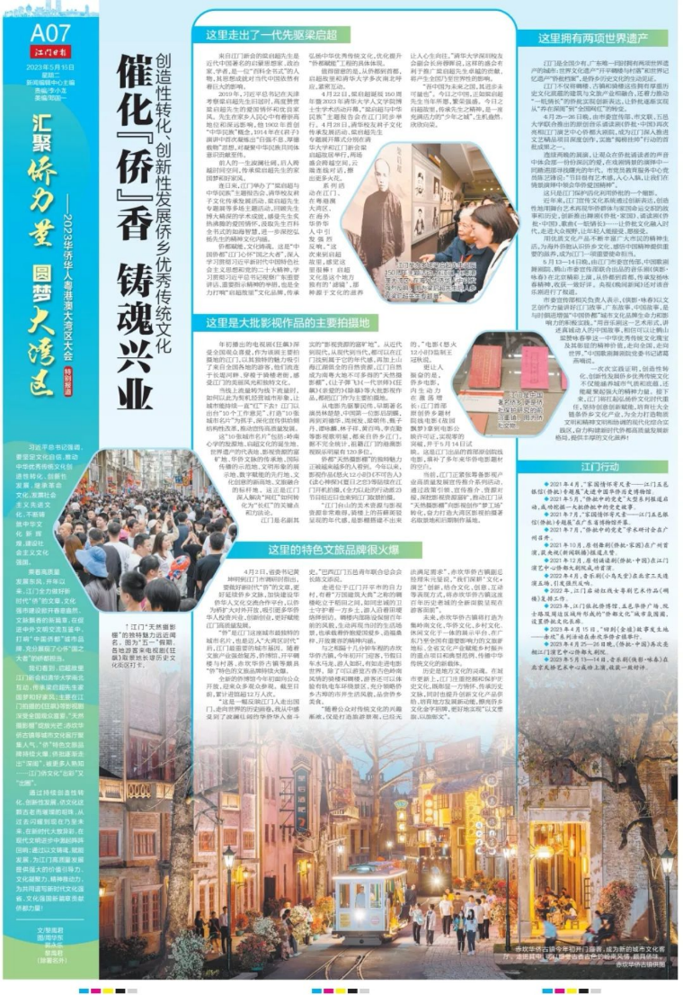 作为2023华侨华人粤港澳大湾区大会举办地的江门,素有海内海外“两个江门”、中国侨都等美誉。近两年来,围绕做好新时代“侨”的文章,江门作出深入推进“侨都赋能”工程等部署,有力凝聚了侨心侨力侨智。