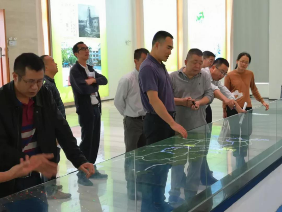 在现场实地调研及听取相关情况汇报后,调研组一行人前往广海湾工业园区管委会大楼参观了广海湾规划展示厅,并在展示厅会议室就目前广海湾大项目的规划、用海、推进情况等方面工作进行了座谈研讨。