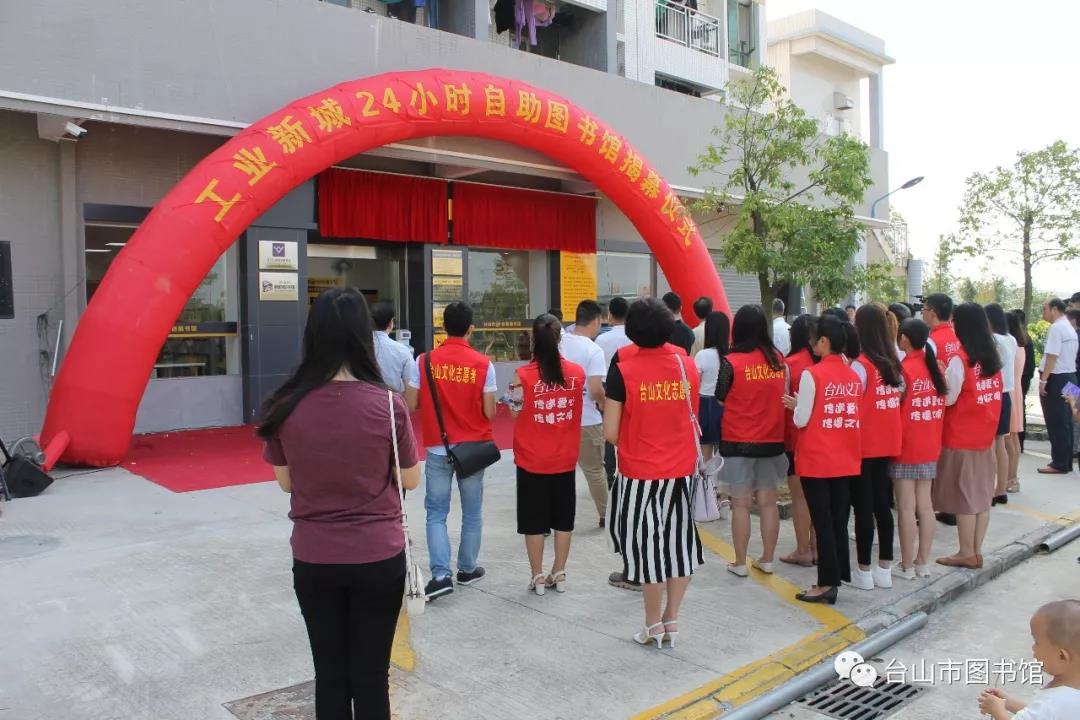 上午,台山市委常委、宣传部长罗海华、江门市文广新局副局长柳超球及相关领导为新建的两座“24小时自助图书馆”在启用仪式上揭幕!在揭幕仪式上表彰了大力支持文化建设事业的合作共建单位:台山市天岭购物广场、台山市侨声艺术文化传媒有限公司、台山市工业新城管委会和台山市枫情尚城花园,并向上述单位颁发了荣誉牌匾。