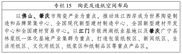 15.陶瓷及造纸。研究和推广特种、高端陶瓷生产工艺技术和装备,以及自动检测、自动包装智能化装备。重点发展高档用纸、高效节能打浆、压榨和干燥技术与装备。推广应用废纸清洁制浆造纸、废纸制浆造纸废水和污泥高效处理和资源化利用及非木材植物纤维清洁制浆技术,推广特种纸研发及产业化。