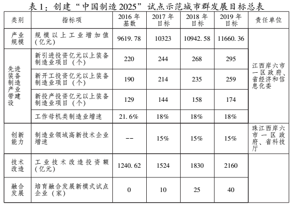 附件:创建“中国制造2025”试点示范城市群发展目标各地分解表(2017年)