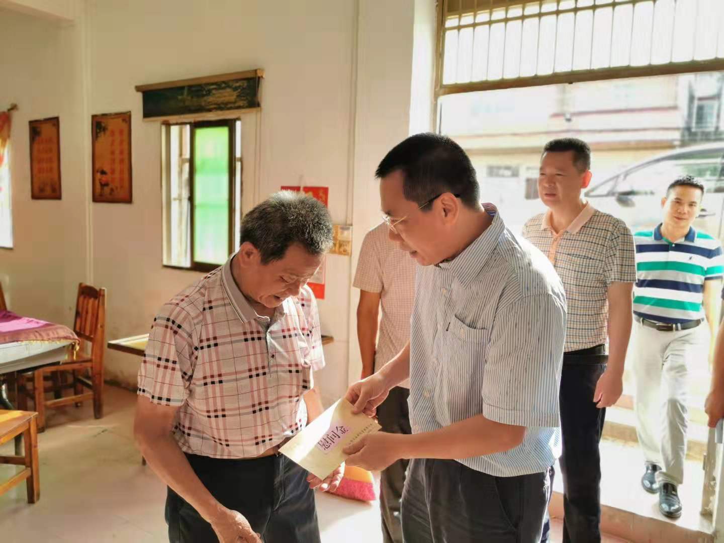 黄旭晖一行在新塘村委会先后走访慰问了老党员刘锦源、生活困难党员刘介铭、刘瑞添,与他们促膝谈心,详细了解其家庭生活和身体情况,倾听他们的意见和建议,向他们表达了党组织的关心和关怀。