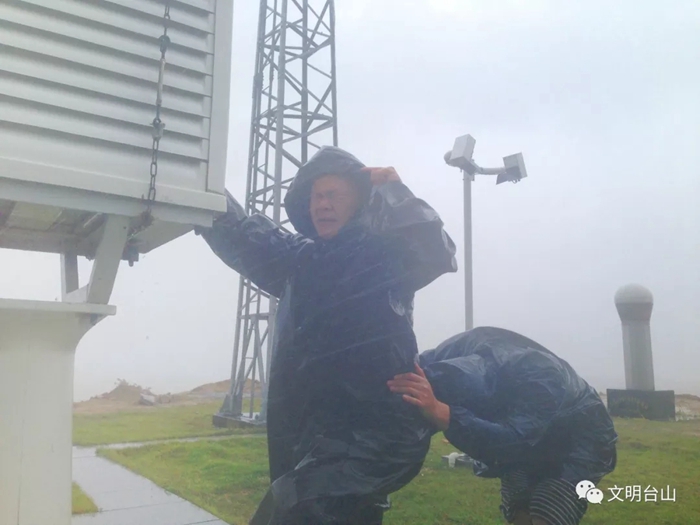 矗立在南海北部近陆海域的上川岛,距离陆地约10公里。自然之力塑造了它“南海碧波出芙蓉”的原始美,也造就了上川岛恶劣的气候条件,它是广东省三类艰苦海岛台站。这里一年中平均50多天刮8级以上大风,暴雨、雷电多发,平均每年有两三个台风吹袭,由于其在气象监测中的重要地位,2014年被升格为国家基准气候站。杨万基和上川岛气象站的职工,正是和台风离得最近的人。让杨万基印象最深的天气事件是2008年强台风“黑格比”,它以16级的狂风将观测场的不锈钢围栏掀翻吹倒,一个人在室外根本无法站立。为了观测实时气象数据同时不被大风吹跑,杨万基和两名观测员用麻绳捆在一起,坚持完成每小时测报一次的要求。从值班室到观测场只有不到30米,但他们走完却用了近10分钟。受台风“黑格比”影响的36个小时里,上川岛气象站的6名同志每人休息不足3个小时。杨万基也被广东省气象局评选为防御强台风“黑格比”气象服务先进个人。