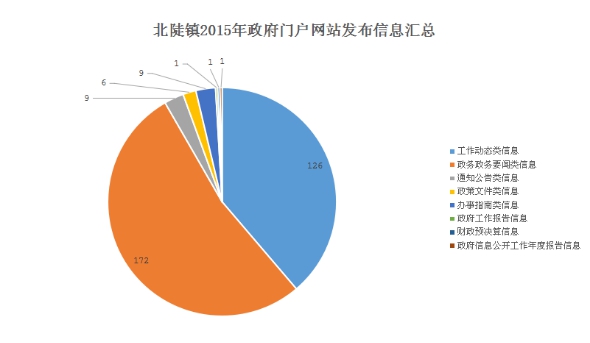 2015年,全年镇政府门户网站发布信息325条,其中工作动态类信息126条、政务要闻类信息172条、通知公告类信息9条、政策文件类信息6条、办事指南类信息9条,政府工作报告信息1条,财政预决算信息1条,政府信息公开工作年度报告信息1条。
