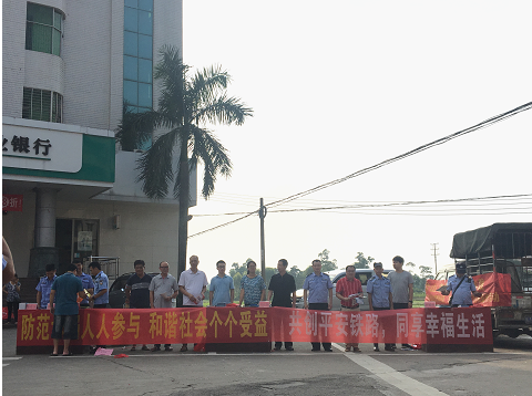 为构建和谐社区,进一步增强居民的扫黑除恶意识,8月15日上午,白沙司法所联合镇综治办、扫黑办、派出所在白沙农业银行门口开展扫黑除恶宣传进社区活动。