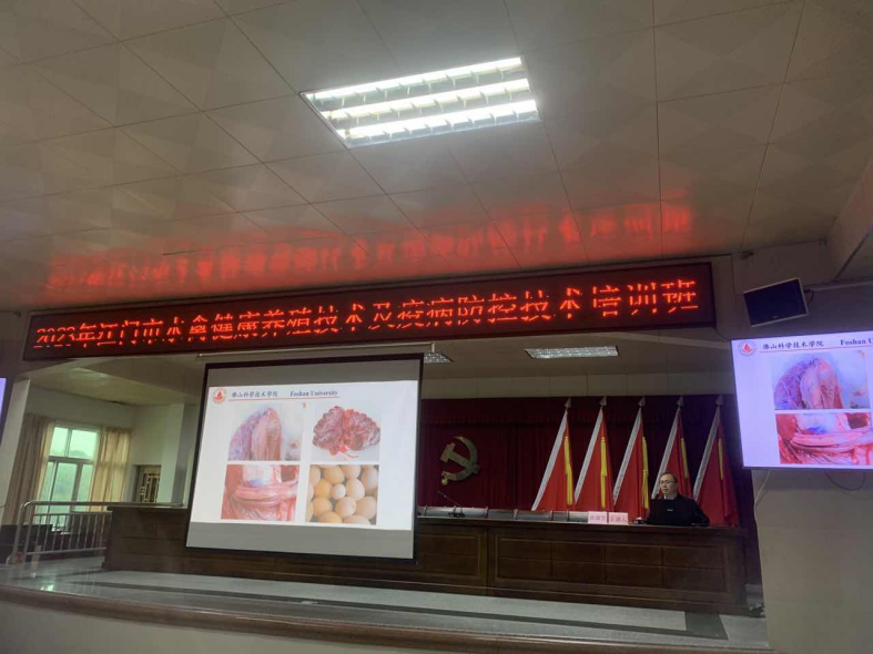 培训班特邀佛山科学技术学院黄淑坚教授和黄得纯教授,围绕品种改良、健康养殖、精准饲喂技术、提高水禽的单产水平和饲料报酬的方法进行专题讲解。培训班为现场人员送去兼具学术性与实用性的引领和指导,对水禽养殖户们存在的疑问、难点进行了解答,理论与案例结合相得益彰、通俗易懂。