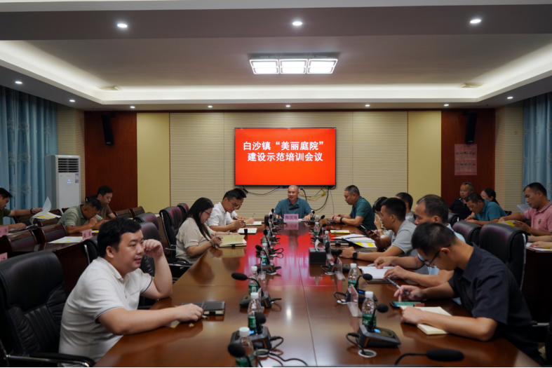 白沙镇开展“美丽庭院”建设示范培训会议,镇领导班子成员、各村(社区)党组织书记等共计40余人参加会议。现场人员通过文件学习、案例分享、交流讨论等形式,进一步统一思想、提高站位,集思广益动员更多家庭参与“美丽庭院”建设。