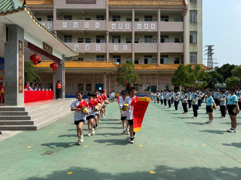 作为“排球之乡”的基层学校,白沙镇中心小学始终将排球运动作为特色教育品牌。开幕式上,学校操场化身“活力赛场”,各班代表队身着统一队服列队入场,啦啦队手持彩棒、标语牌助威,现场气氛热烈。