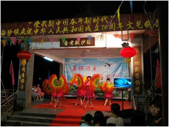 春华秋实70载,砥砺奋进再出发!为热烈庆祝新中国成立70周年,深入推进“党建统领,新中国”工作落实,宣传、引导居民积极参与到新中国中,使新中国意识深入到每个居民家庭,营造欢乐祥和的节日氛围,进一步扩大新时代文明实践主题活动的覆盖面和影响力,9月30日晚上,由白沙镇主办的 “爱我新中国 奋斗新时代” ——白沙镇庆祝中华人民共和国成立70周年文艺晚会在白沙镇白沙圩举行。