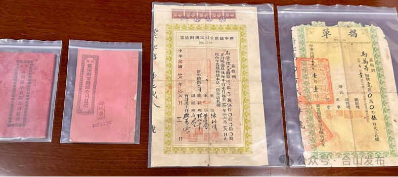 4月25日上午,“马万昌家族文物捐赠仪式”在台山市华侨文化博物馆举行。此次捐赠的17件文物包括马万昌从美国带回家乡的银勺、银叉,同时还有马氏家族的《马氏族谱》和《国瑞祖降神贴》等,其中最为珍贵的是《新宁铁路公司定期付款单》《新宁铁路公司揭单》和《商办广东新宁铁路公司息折》。从这些文物中可以判断新宁铁路西南支线筹建之初及此后运营困难之时,马万昌一直出钱出力支持铁路的建设和运营。