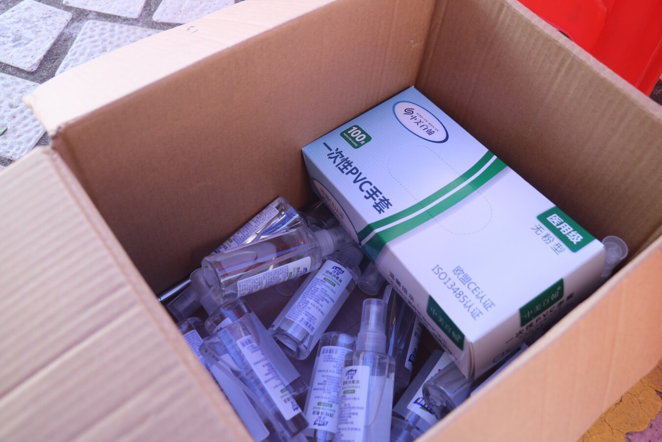 在每个义工服务岗上,游客们咨询、登记完都会跟志愿者们说一声“谢谢”“辛苦了”,还有一名爱心游客送来了酒精消毒液、手套等防疫物资。