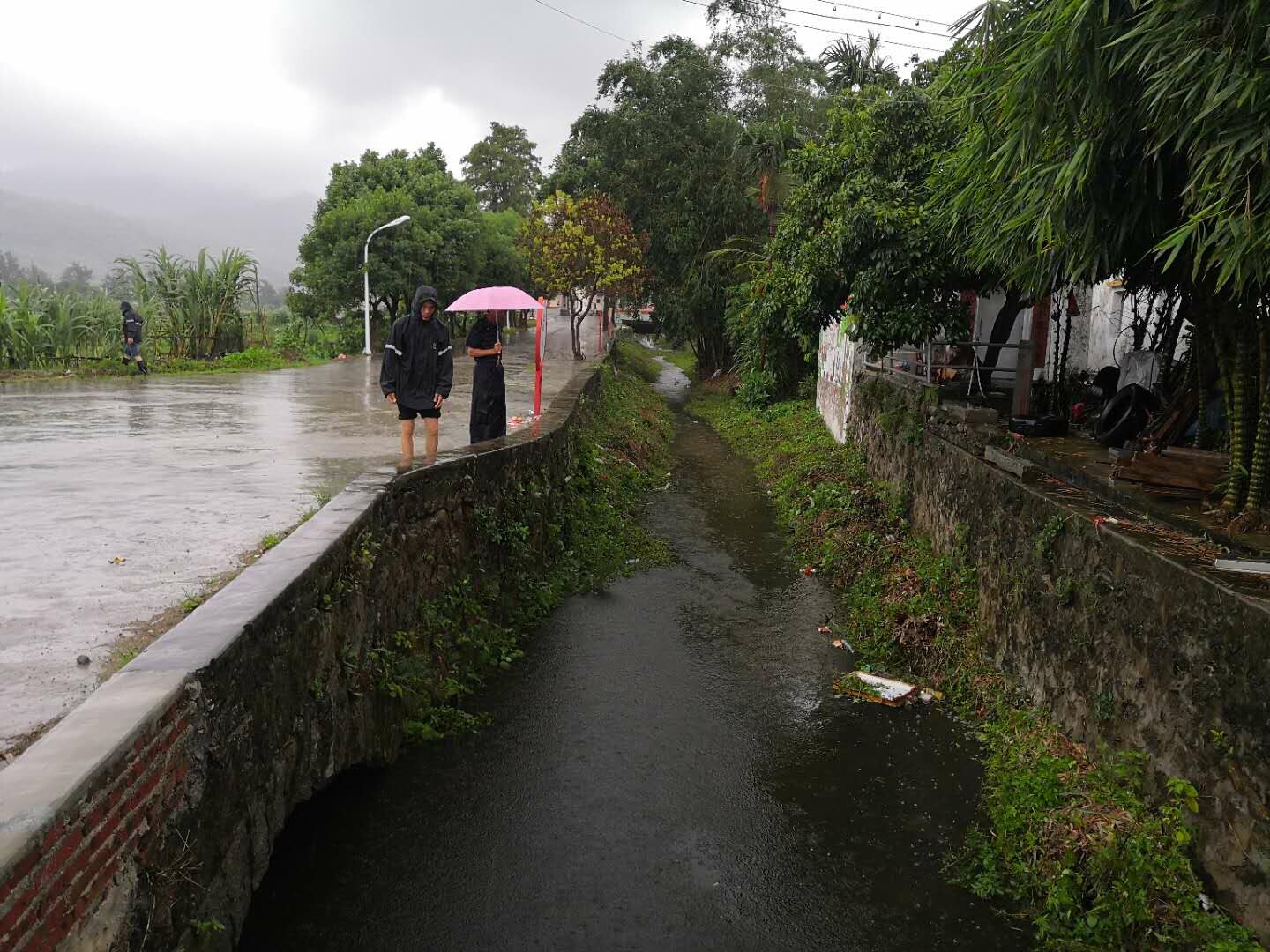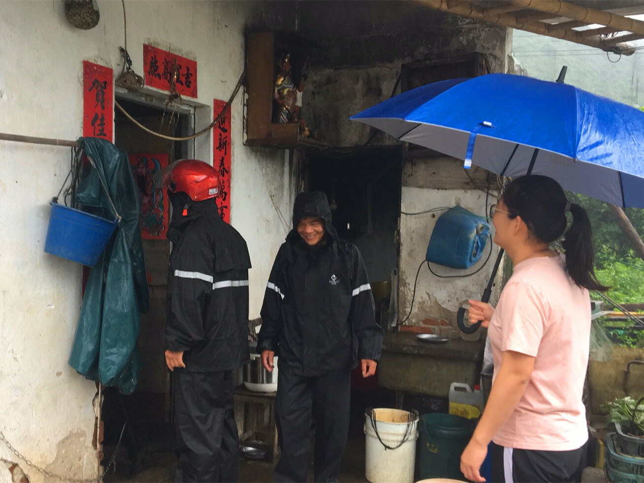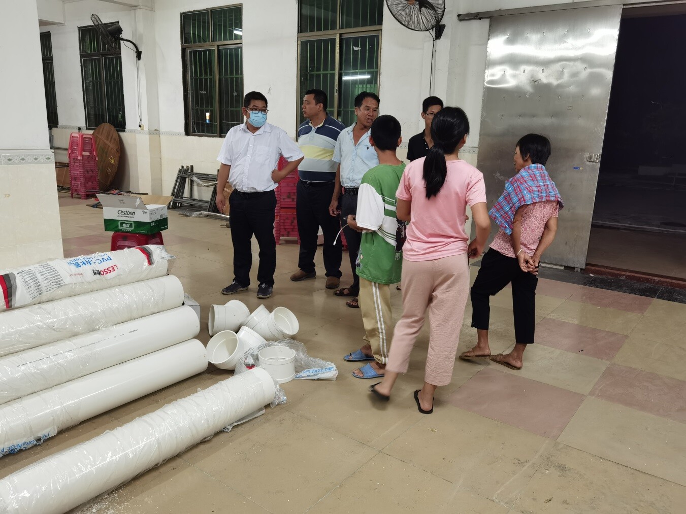 镇党委书记陈卓豪、镇长谭文伟分别带队巡查水库、重点区域,检查人员转移情况,落实各项防风措施。