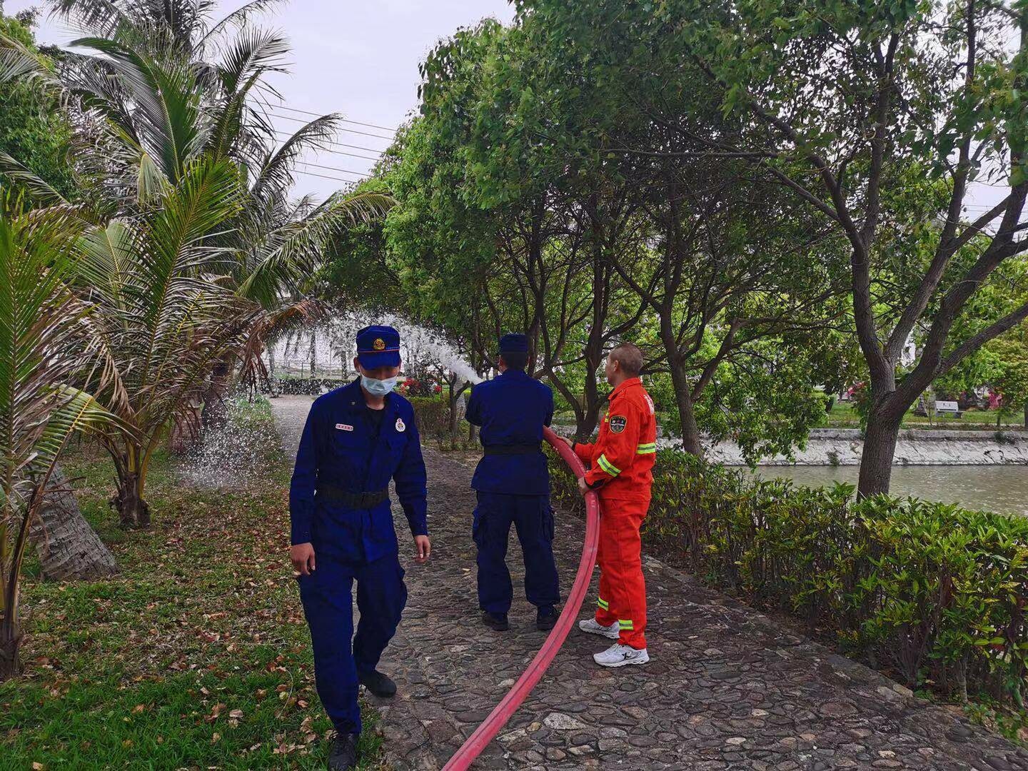 在演练过程中,消防员针对工作要点,详细讲解了灭火器的使用方法及消防水带铺设、出水等注意事项,并结合微型消防站的实际情况进行消防演练。
