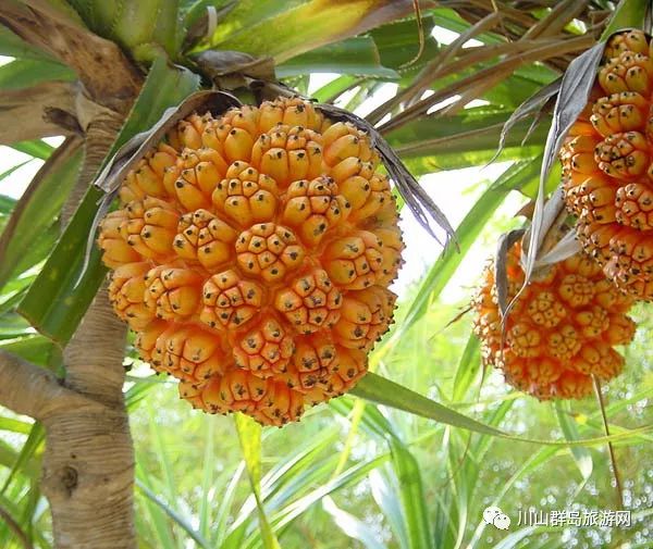 到了盛夏时节,露兜簕淡黄色的花序像凤冠上的珠光宝钗,香飘数里,随风而动;也是盛夏时节,一个个几斤或十几斤隔年开花已结成的红色露兜果穗犹如一个个、一片片大红灯笼高高挂在了半空,成为上川岛一道独特的风景,也是川岛地理地貌漫长演变史的见证。