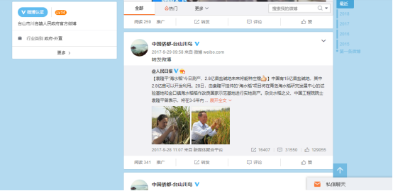 在主动公开信息工作中,我镇2017年度还通过官方微博发布信息数512条,“川岛发布”微信公众号发布信息数256条。