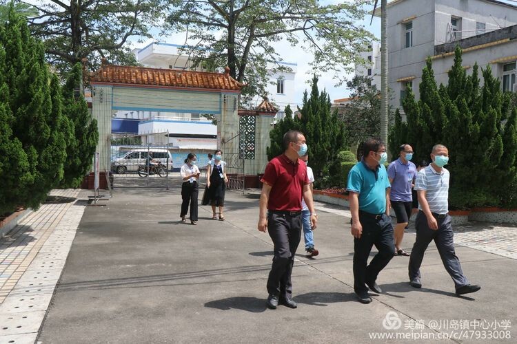5月14日上午,川岛镇党委书记陈卓豪、副书记黄建锋一行到川岛镇中心小学检查疫情防控和返校复学工作。