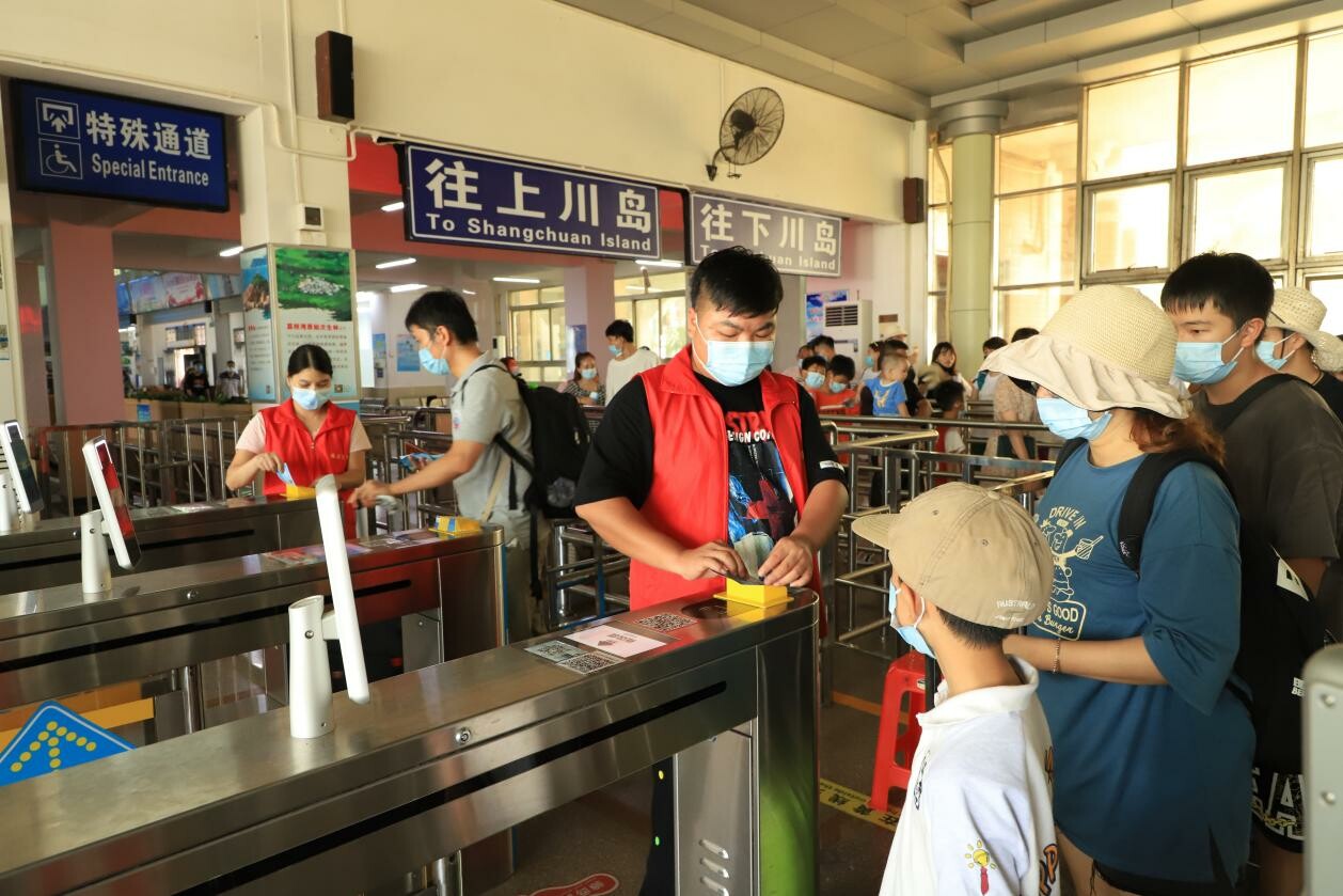 二是旅游接待方面。增加售验票通道,保证售票窗口、验票进出口全部开放,配有专门工作人员在验票口维持秩序,疏导指引游客,根据纸质套票、电子票不同票种合理分流人员验票扫码,保证游客快速乘船。现阶段准备试行海上客运航班回程预订航班,确保来川岛游玩的旅客能够错峰、安全、有序、温馨回程。