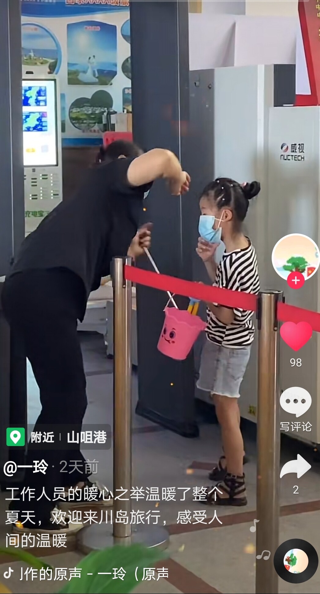 旅游高峰期正值今夏酷暑高温,景区各个部门的全体工作人员都积极坚守在各自岗位上。特别景区一线部门工作者,在高温30多度的环境下每天平均站立着十几个小时,扫码、售票、验票、引导车辆、回答游客的咨询,他们的工作简单而又琐碎,但他们却坚守在自己平凡的岗位上,默默奉献,以一己之力保障旅游高峰期平安有序,以自己的付出为广大来川岛的游客提供温馨贴心的服务,展示了川岛人民热情好客的风采,获得了游客的一致赞誉。