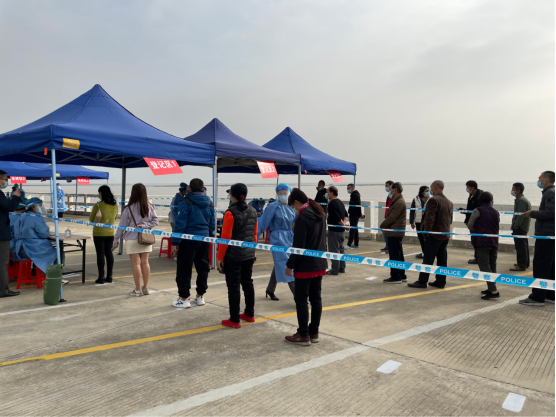 1月9至10日,川岛镇分别在上川沙堤广场、下川略尾社区、山咀港海边停车场和上川三洲大江村体育广场设置核酸采样点,面向周边村民、辖区重点行业从业人员开展大规模核酸检测。
