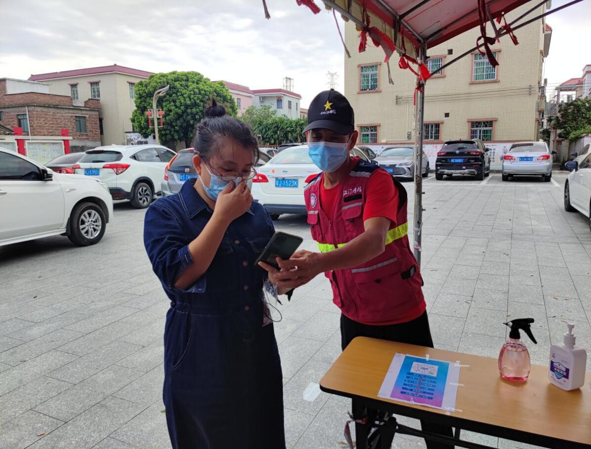 壹点爱志愿者廖智权正在为群众打开“粤核酸6”码
