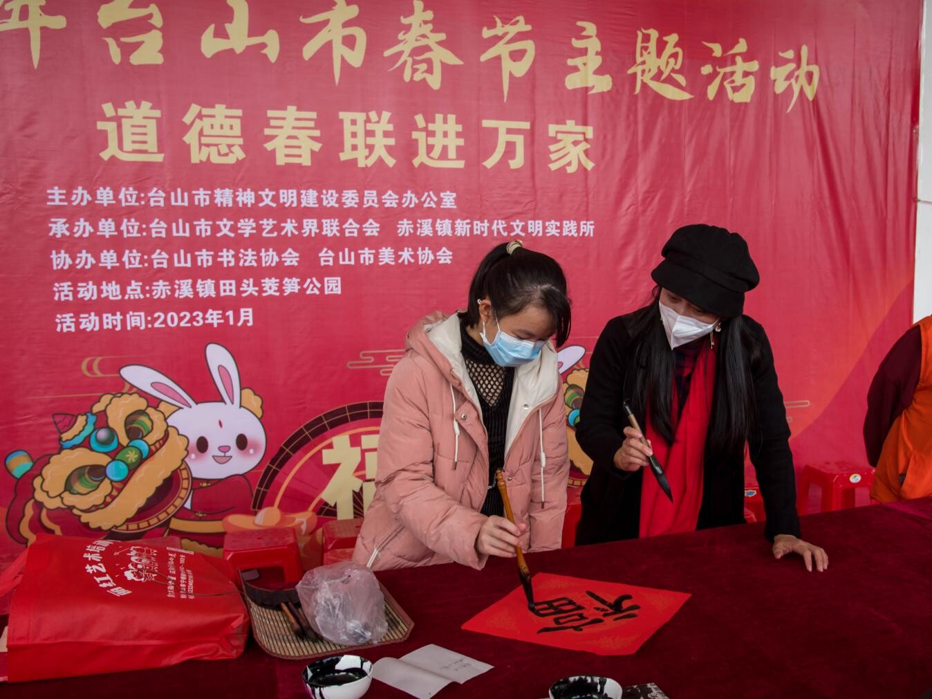 笔墨飘香,春联送福。新春佳节来临之际,为深入学习宣传贯彻党的二十大精神,弘扬中华优秀传统文化,1月12日上午,台山市文联、赤溪镇人民政府在赤溪镇开展道德春联进万家活动,为群众送上饱含墨香的祝福。