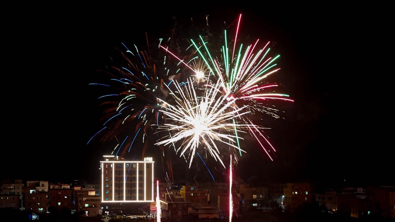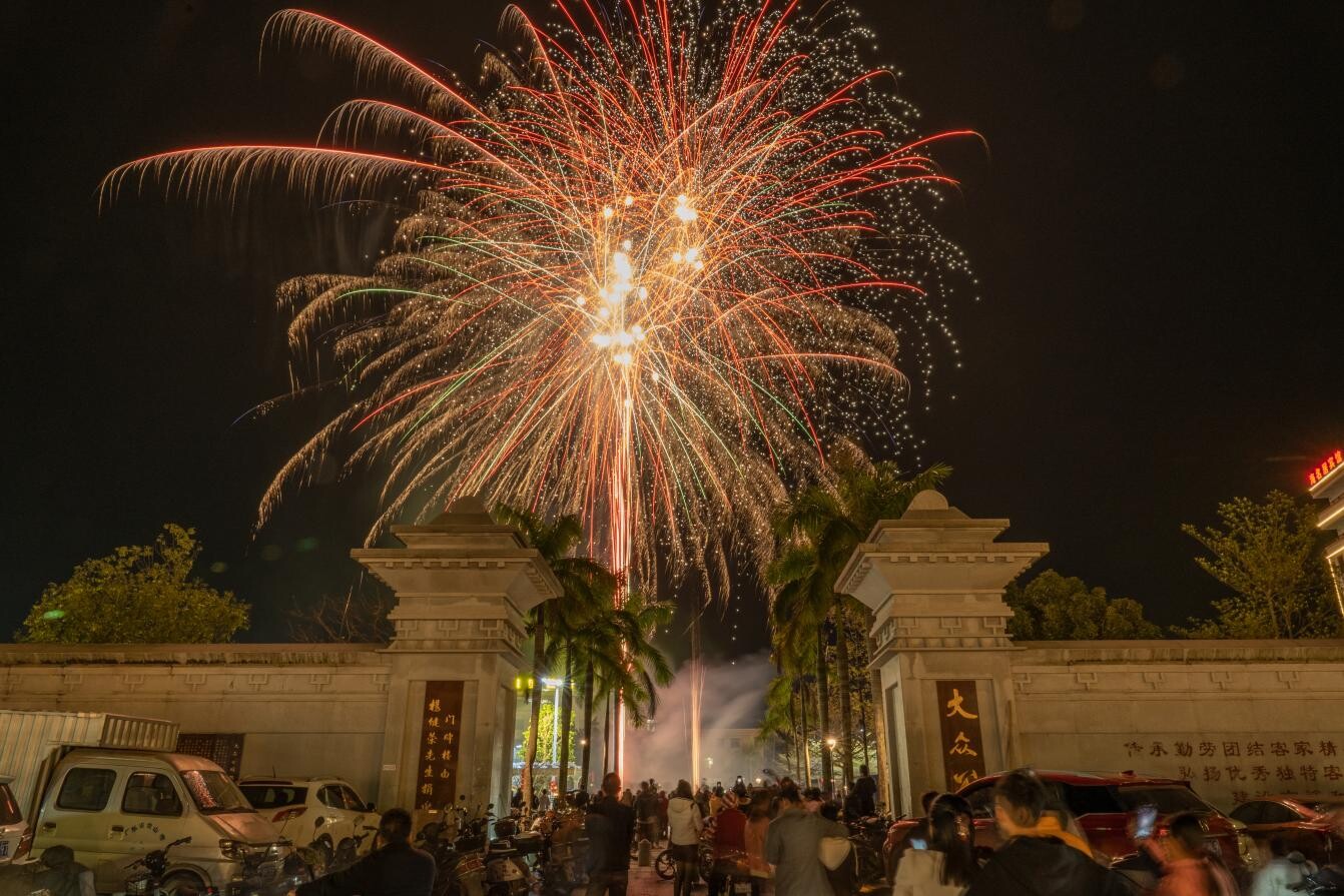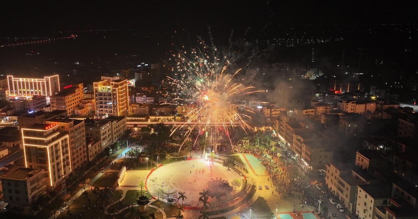 2月24日(正月十五),夜幕降临,华灯初上。在田头沿河西路(网红路)和赤溪圩大众公园,人群涌动,欢声笑语此起彼伏,群众纷纷驻足期待着烟花绽放的那一刻。19时30分,烟花腾空而起,化作五彩斑斓的花朵在夜空中激情绽放,点亮了赤溪的夜空,更点亮了每一位赤溪人民的心。“这是我第一次在这里过元宵节,听说这里有烟花就来看了,很浪漫、很震撼!”从甘肃来到赤溪参与黄茅海跨海通道建设的马倩倩激动地说。烟花璀璨映赤溪,这一夜,全镇人民在田头和赤溪两个片区分别欣赏着璀璨的烟花盛宴,共度了美好的节日时光。
