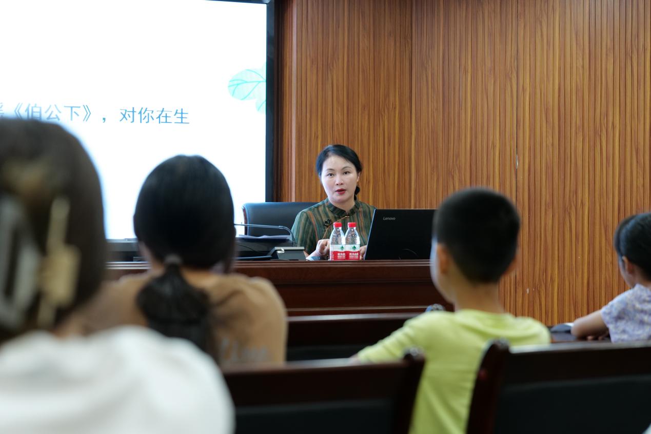 在结营课堂上,赤溪镇邀请了广东技术师范大学音乐学院副院长陈菊芬现场教学,主要围绕客家歌谣《伯公下》开展授课。从腔调、感情等不同的角度教学演唱,呈现了客家先民们在无数次种族迁徙中所经受的苦难,以及他们的乐观主义精神,引领学生们参与到客家童谣文化传承中来,感受童谣的文字美、意境美、韵律美。同时嘱咐学生们要尊重客家传统文化、民俗文化,更好地了解客家人的传统和历史,增强文化自信和文化认同感。