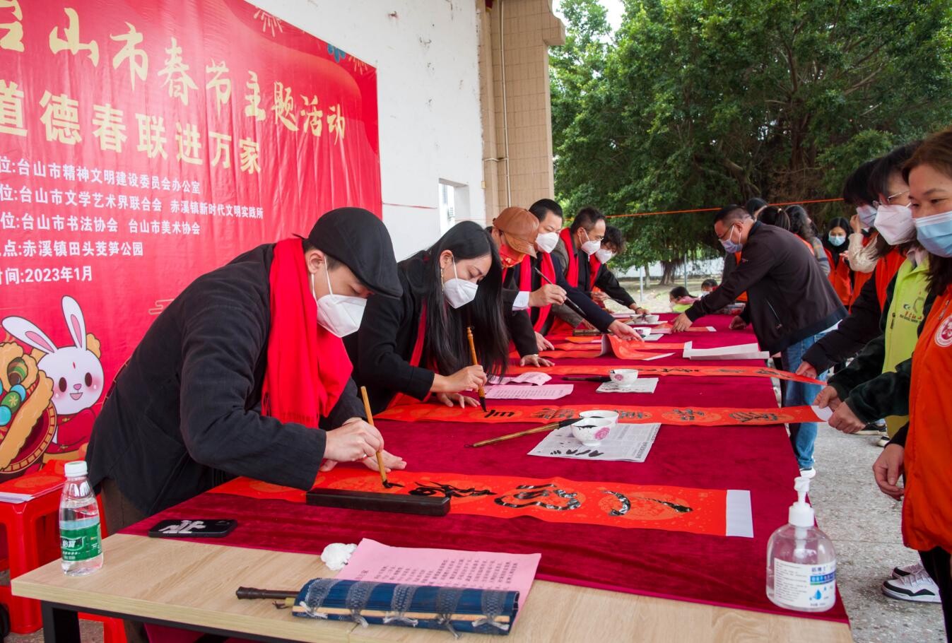 笔墨飘香,春联送福。新春佳节来临之际,为深入学习宣传贯彻党的二十大精神,弘扬中华优秀传统文化,1月12日上午,台山市文联、赤溪镇人民政府在赤溪镇开展道德春联进万家活动,为群众送上饱含墨香的祝福。
