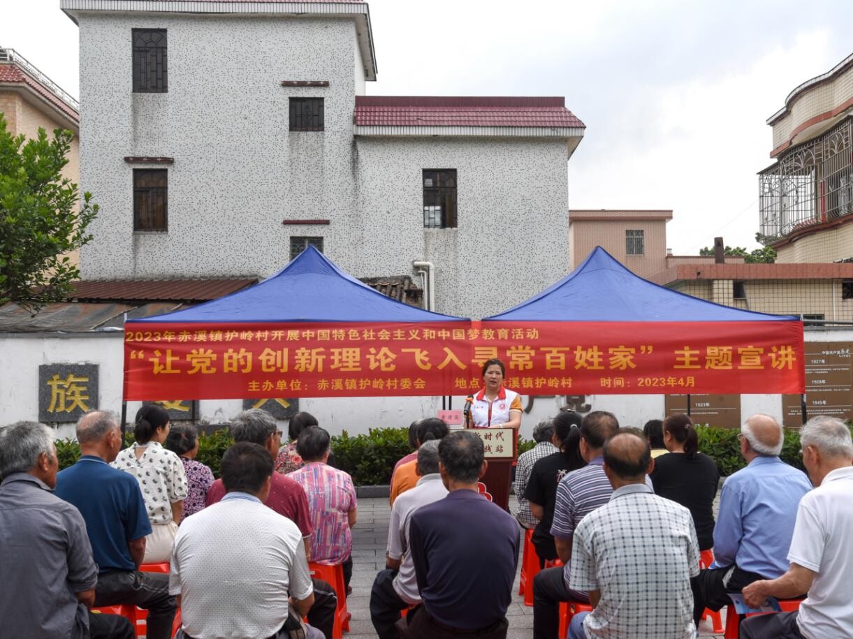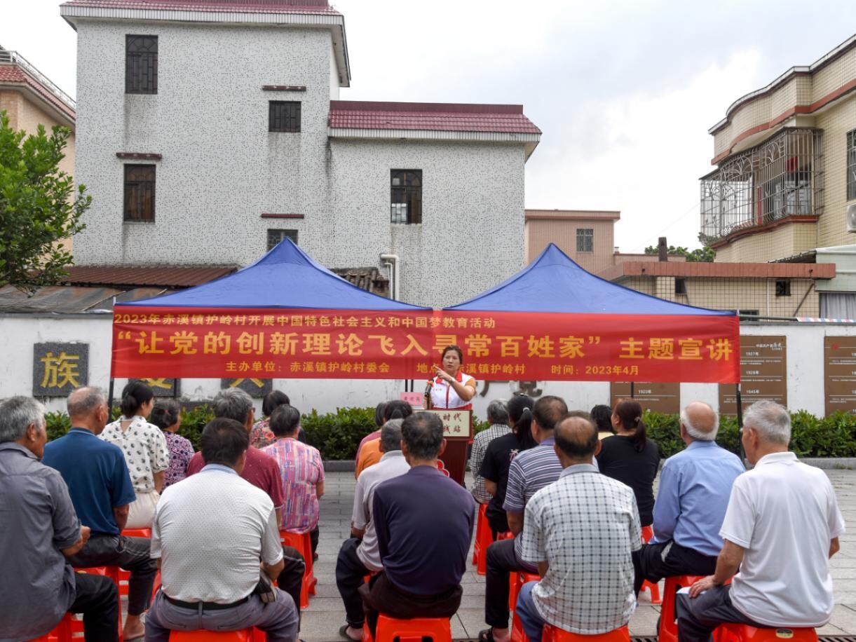 党的二十大报告指出:用党的创新理论武装全党是党的思想建设的根本任务。赤溪镇为全面学习宣传贯彻党的二十大精神,推动党的创新理论在农村落地生根、开花结果,4月18日,护岭村委会开展“让党的创新理论飞入寻常百姓家”宣讲活动。主讲人用“接地气”的语言,“聚人气”的方式,为基层群众送去党的二十大报告的新观点、新理论、新思想。
