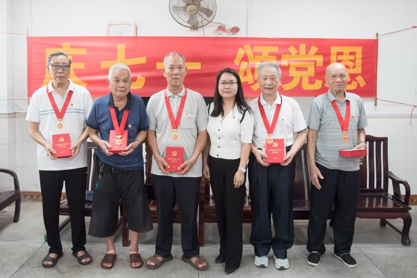 在田头老干家党总支的会场内,将沉甸甸、金闪闪的纪念章捧在手心时,老党员们分外激动。老党员钟日平感慨地说:“‘光荣在党50年’纪念章不仅代表个人荣誉,更是对我们老党员在党言党、无私奉献的最好认可。我们一定会把荣誉转化为动力,发挥余热,发扬党员精神,继续奉献力量,更加努力地回报社会。”