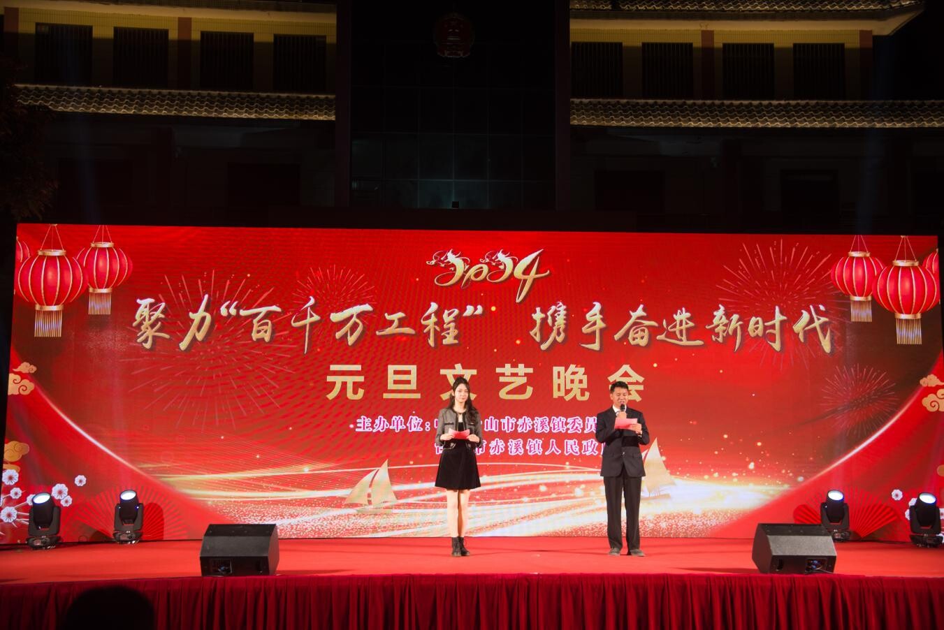 为深入学习贯彻习近平新时代中国特色社会主义思想和党的二十大精神,丰富广大人民群众的精神文化生活,营造喜庆、祥和的节日氛围,进一步推动赤溪镇新时代文明实践工作走深走实,助力“百千万工程”,12月28日,赤溪镇在镇政府大院举办赤溪镇2024年“聚力‘百千万工程’携手奋进新时代”——元旦文艺晚会活动。
