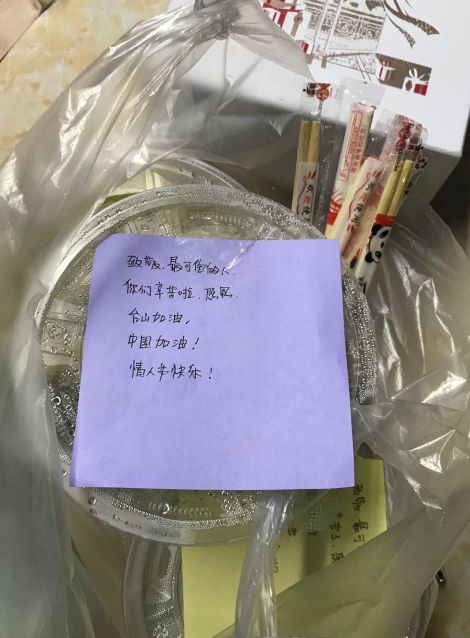 还有更多不愿留下姓名的热心群众为一线工作人员送上暖暖的奶茶、咖啡和饺子、汤圆、宵夜等等,还送上了温情的纸条“致敬最可爱的人,你们辛苦啦,感恩,台山加油,中国加油......”