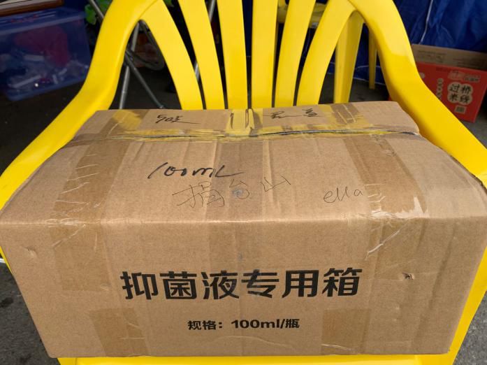 ▲热心人士Ella为台城检疫站送来50瓶酒精抗菌液