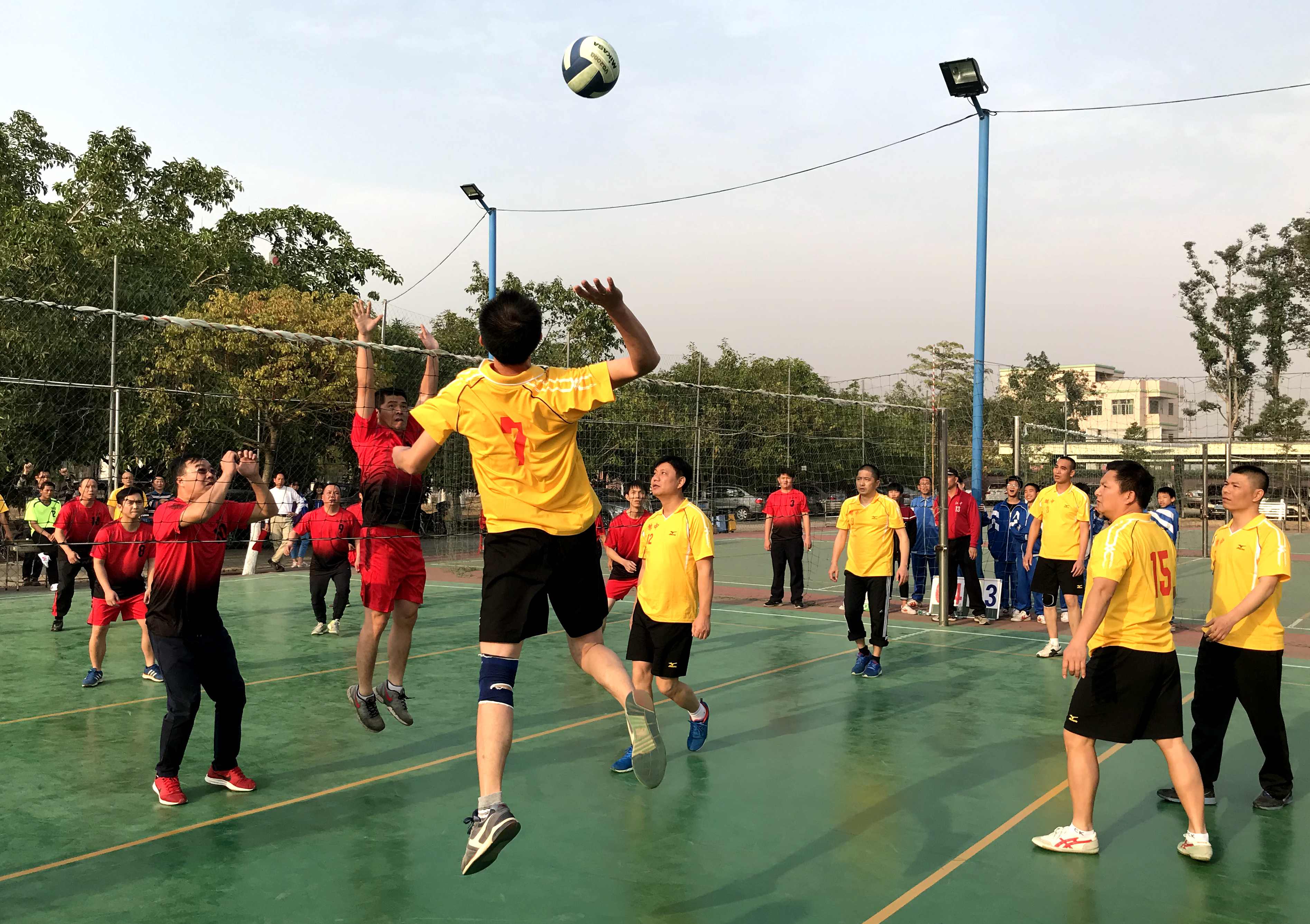 为进一步推进全民健身活动,台山市端芬镇于12月26日起举办为期三天的2017年端芬镇“南粤古驿道·海口埠银信杯”九人排球赛,来自端芬辖区的村(居)、部门单位等10多支队伍100多名队员参赛。决赛于12月28日下午在台山海口埠银信纪念广场旁的排球场举行,吸引了周边100多名群众围观。