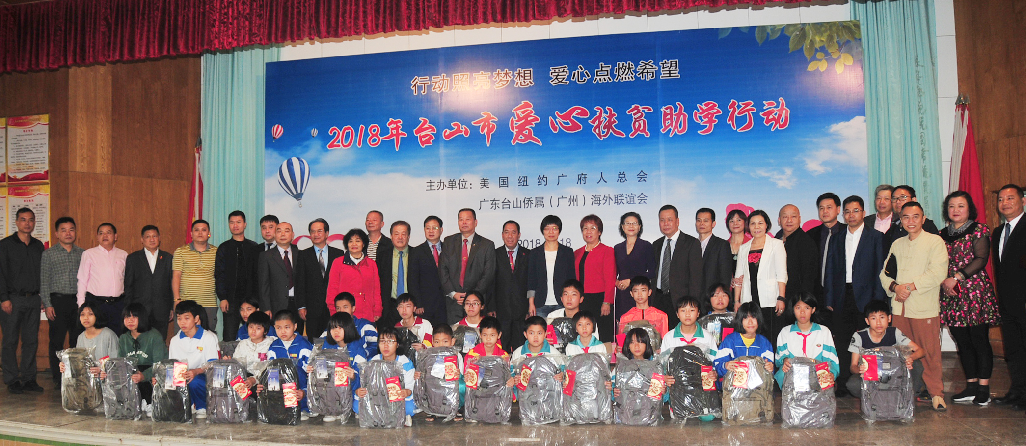 由美国纽约广府人总会、广东台山侨属(广州)海外联谊会主办的爱心扶贫助学行动,于2018年11月18日在端芬镇人民政府礼堂举行。市委常委、统战部长李白云,市教育局、外侨局、端芬镇领导,以及美国纽约广府人总会创会主席容艺辉、广东台山侨属(广州)联谊会会长陈健文等领导嘉宾出席。