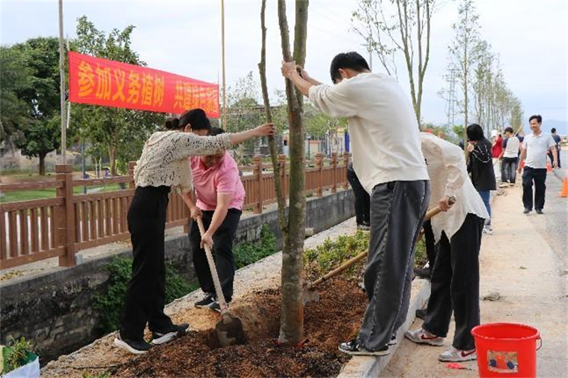 据了解,结合海口埠周边环境整治及湿地公园建设需求,本次植树活动共种下各类乡土植物和树种约220株,进一步提升公园的景观效果,为群众营造舒适美丽的游园环境。