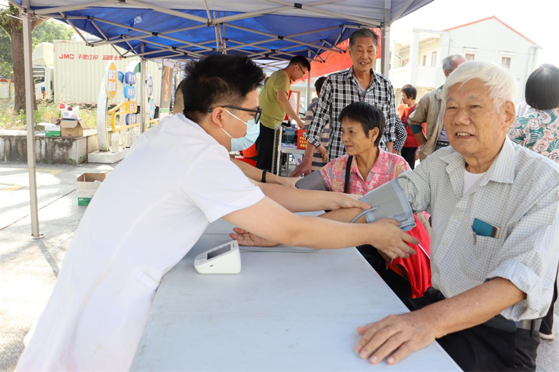 同时,医护人员免费开展义诊活动,为群众提供测量血压、把脉问诊、健康咨询等服务,针对性地给出健康指导。