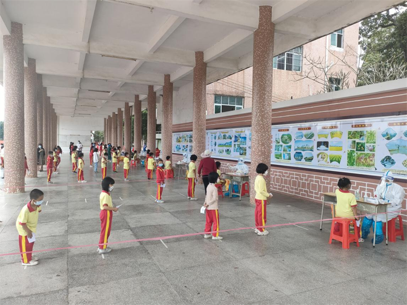 3月21日下午,端芬镇在各学校有序开展核酸检测,现场教师、学生秩序井然,有条不紊。全员全程佩戴好口罩,保持间距排队,学生们按照要求分时、分批到达采样点,检测工作快速、有序开展。